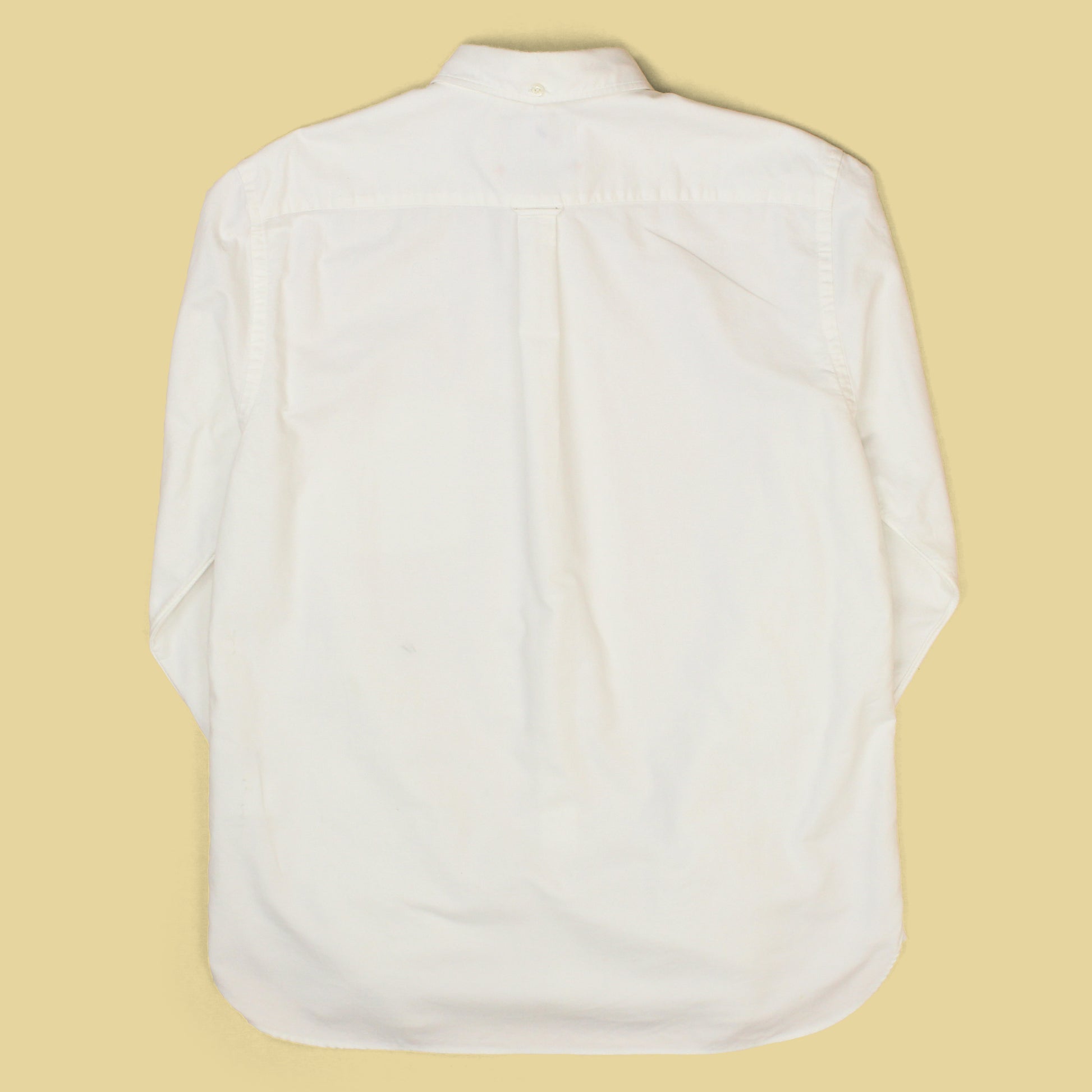 - Button-down collar with third button at back neck