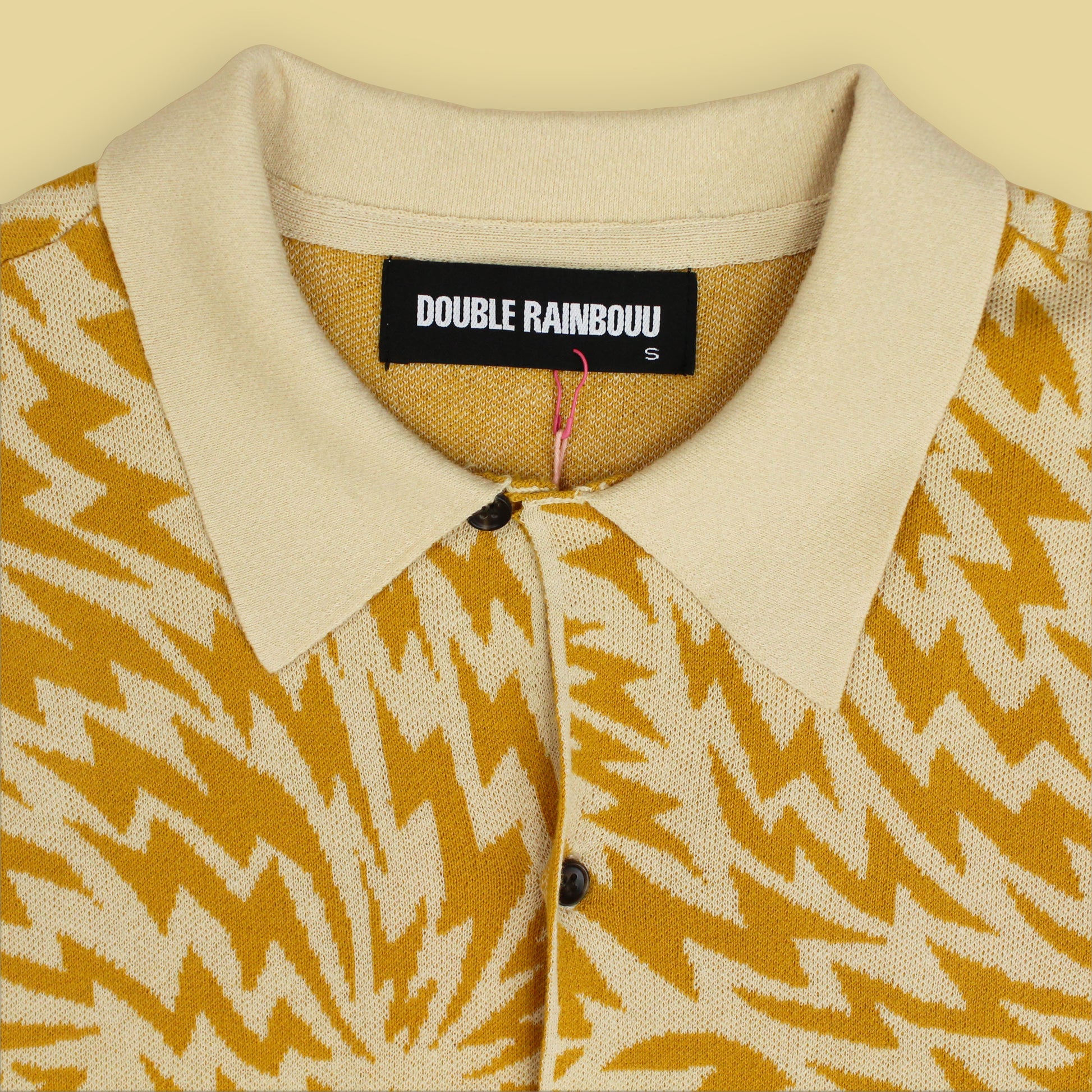 Double Rainbouu Electric Intarsia Knit Cotton Loop Collar Shirt