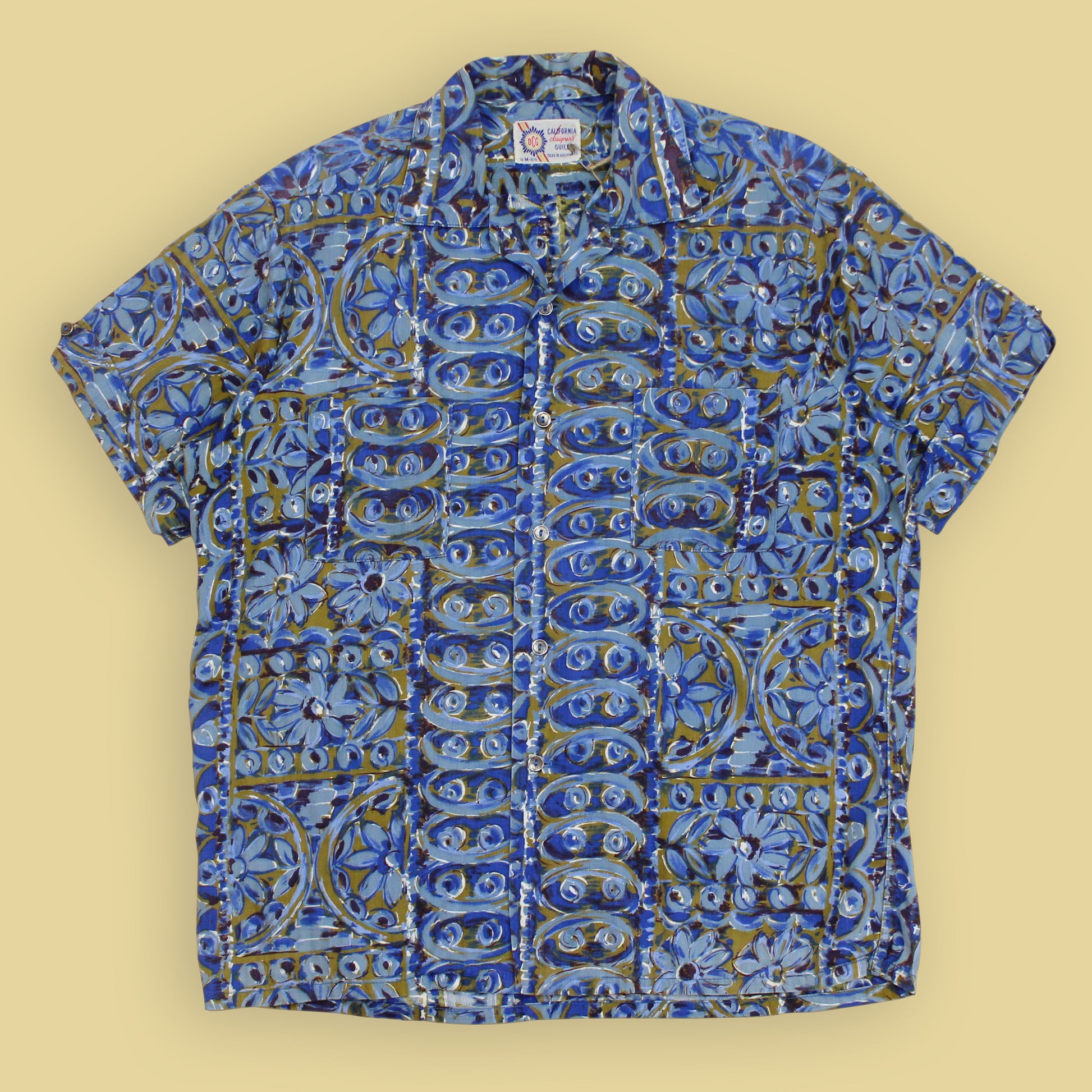 Duke of Hollywood Floral Mod Print Rayon Loop Collar Shirt