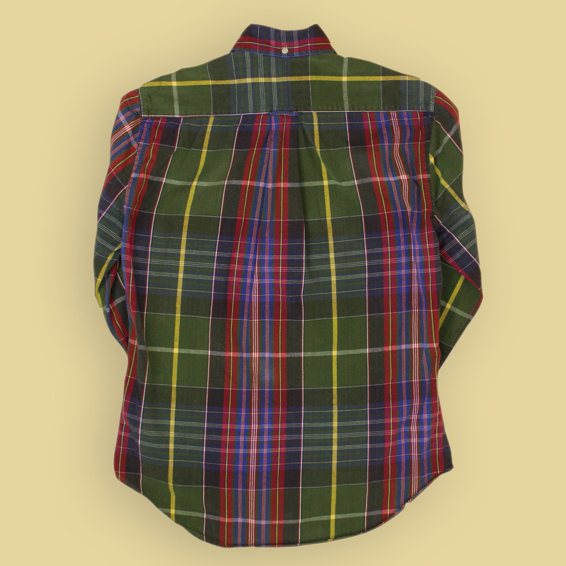 - Button down collar with third button at back of neck