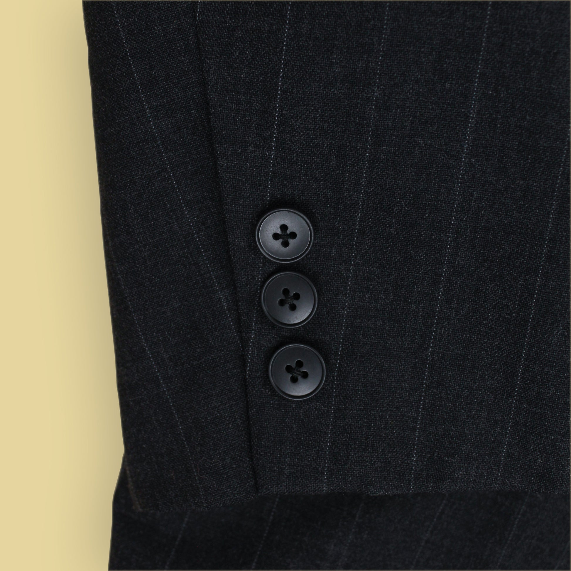 - Non-functioning 3-button cuffs on jacket